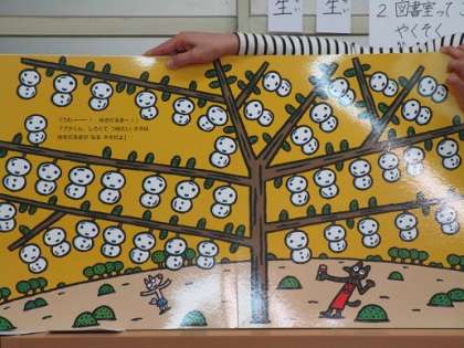 「ネタネタ ロデネタ〜」の呪文を唱えて,種からどんな実が出るか,わくわくしながら絵本の世界を楽しみました。