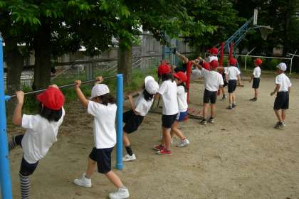 前回り降り,こうもり,地球回り,布団干し,逆上がりなど,友達に教えてもらってできるようになった子もあり,クラスの約2/3ぐらいが5種目ができるようになりました。