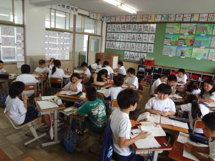 三人グループで,「聞く人」「答える人」「記録する人」に分かれてインタビューをしました。