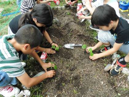 みんなでよくよく観察したのち,自分たちで耕した学校の畑に植えかえました。