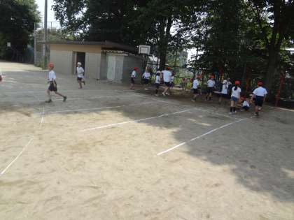 走り幅跳びをしました。より遠くへ跳ぶにはどうすればよいか考えながら学習しています。