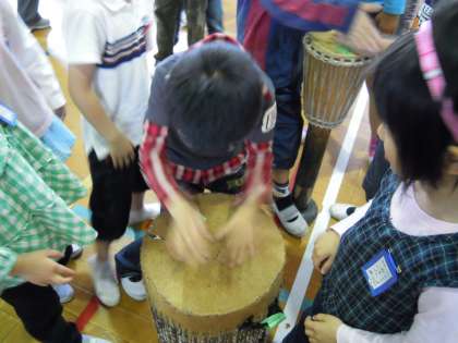 アフリカの音楽は、太鼓が多く、たくさんの種類の太鼓や手作りピアノを演奏させて
