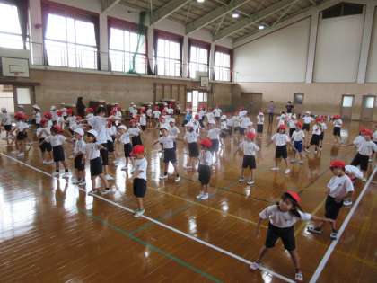 音楽に合わせて両手を振ったり,おしりの後ろにかわいい翼を表現したりと,一人ひとりが楽しく,一生懸命取り組んでいます。