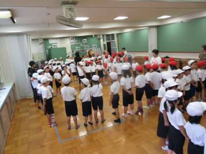 まっすぐ列をそろえたり,クラスごとに円になったりするのは,やはり初めての子どもたちには難しそうでしたが…。