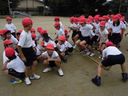 少しずつチームでいきを合わせることの大切さに気付き,自分が跳ばないときも声を掛けたり,すぐにしゃがんで少しでも速く竹を持つ人が進めるようにしたり,工夫しています。
