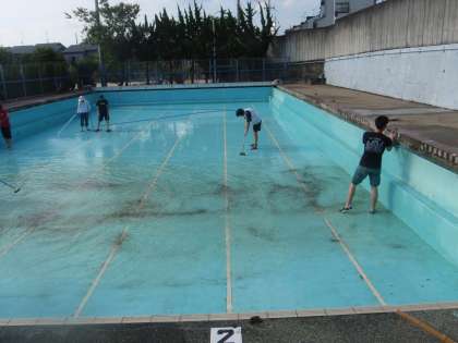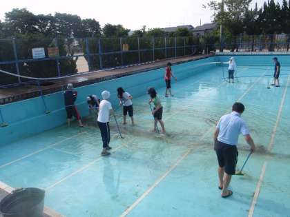 5年生のお手伝いもあり,プール掃除も終わりました。水もはりました。