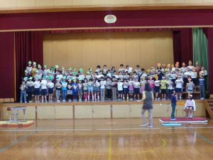 いよいよ来週がまなびの集いです。お手紙の音読をがまくんとかえるくんのお面をつけて練習しています。みんなで合わせて音読したり,一人ひとりの文章を大きな声で発表したりすることができるようになってきました。