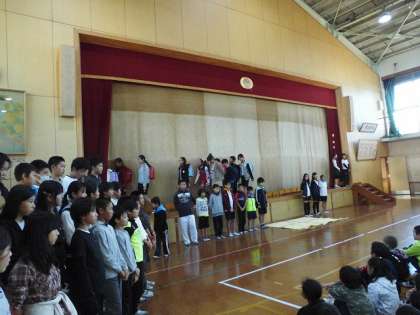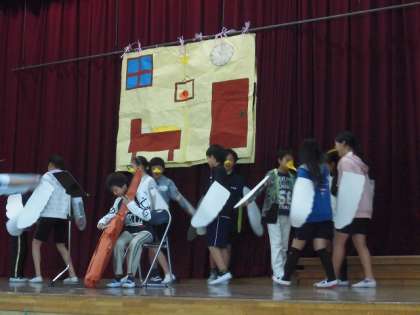 「学びの集い」に向けて完成度が高まった演技を披露しました。リハーサルには,2年生と4年生が見に来てくれました。