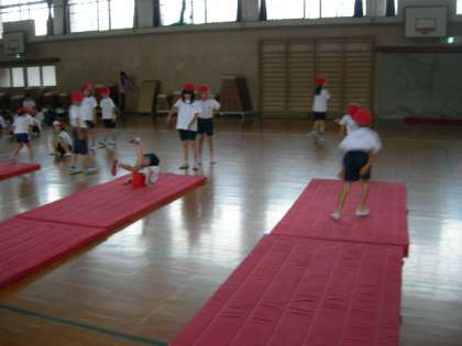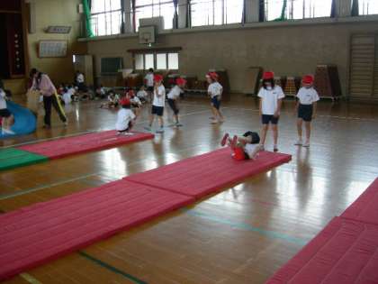 体育館でマットあそびをしています。