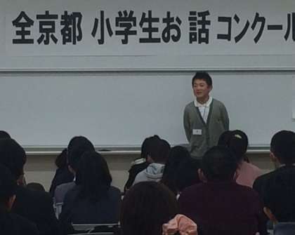 11日(祝)に,京都女子大学で開催された第57回全京都小学生お話コンクールに日野小学校からも出場しました。たくさんの人の前で,自分の夢や,友達についてお話をしました。緊張する様子もありましたが,練習の成果を発揮し,いきいきと話すことができました。