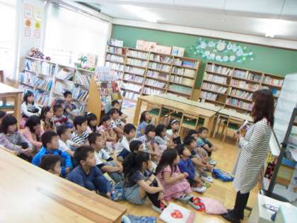 17日(水)の3時間目に図書室の使い方について学習しました。西村先生に大きな絵本で読聞かせしてもらいました。そのあとは,自分の読みたい本を選びました。日頃から本を手に取り,いろいろな本に触れてほしいと思います。