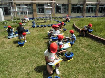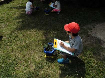 ミニトマトの観察をしました。ミニトマトは,1週間前に比べて,少し大きくなっていました。