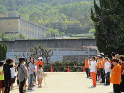 本日,9時半より,校庭で『日野支部少年グラウンドゴルフ大会』が開催されています。