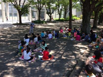 朝,おうちの人ににぎってもらったおにぎりを食べています。おいしいです。