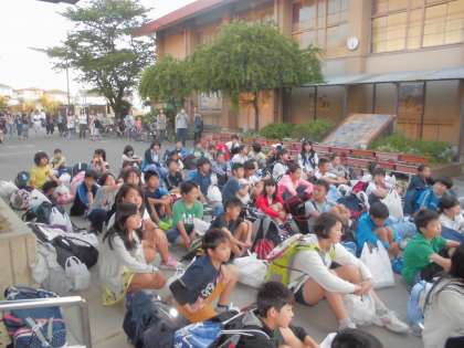 6年生の子どもたちが帰ってきました。渋滞の影響で予定の時刻より到着が遅くなりましたが,無事,解散式が行われました。