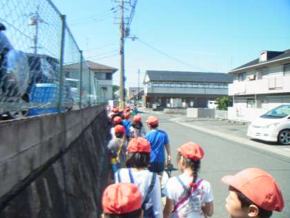1・2時間目に校区探検へでかけました。今日は,野色の方をまわりました。