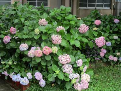 ふと,本校の中庭をのぞくと色鮮やかな紫陽花が…。先日までは,まだこんなに色づいていなかったんですよ。時間のあるときには,中庭に出ていろんな形や色の紫陽花をめでるのもいいですね♪