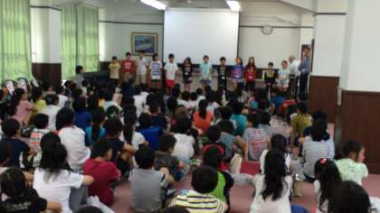 スチューデントシティ学習が始まりました。各会社の代表から今日の抱負を発表していきます。