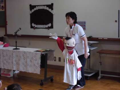 「デンタくん」の登場で子どもたちも大喜びでした。