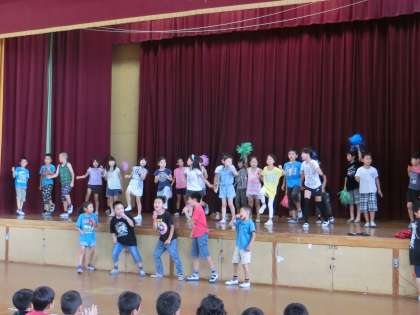 今日は集会委員会が企画してくれたカラオケダンス大会がありました。この日のために休み時間ずっと練習してきたのでみんな緊張しながらも,体育館の舞台に立つと練習よりもカッコよく踊る姿がありました。カラオケで歌を歌うチームとダンスを踊るチームに分かれて発表しているクラスもあり,全力で楽しく発表する姿が印象的でした。
