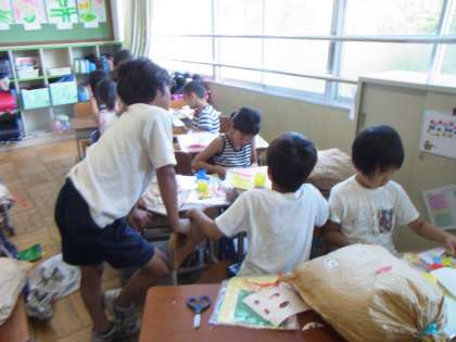 この一週間は春日丘中学校から中学2年生が2年生のクラスに来てくれました。学習を一緒に手伝ってくれたり,休み時間に一緒に遊んでくれたりしました。