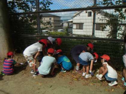 長い夏休みが明けて,学校が始まりました。学校が始まるのを楽しみにしていた子もまだ夏休みが続いてほしいという子も朝会で話を聞いてから,みんなで協力して草抜きをしました。運動場がきれいになりましたね。