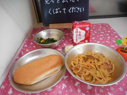 「小型コッペパン・牛乳・イタリアンスパゲッティ・