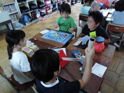 夏休み中に,作った作品を紹介し合いました。どの人の作品も,とてもかわいらしく,工夫がたくさんしてありましたね。お友だちの作品をしっかりと見て,感想も伝え合いました。