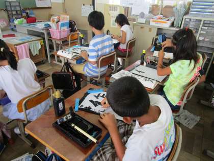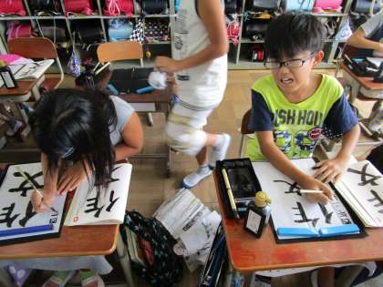 毛筆では基本となる「とん,すう,とん」を意識して,丁寧に書くことができました。