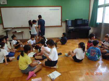 生活ごとに,仕事を分担しました。しおり作りや,準備体操練習など,