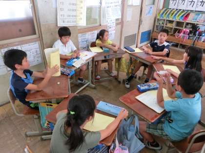 3年生では総合的な学習で,「日野のいいところをさぐろう」という学習をしています。日野のいいところを見つけ,そのいいところや,もっとこうしたら良くなる,などといったことを話し合い,発信していきます。今日は,「自然が多い」や「お寺が多い」などの日野のいいところをいくつかのグループに分け,グループ内で魅力について話し合いました。
