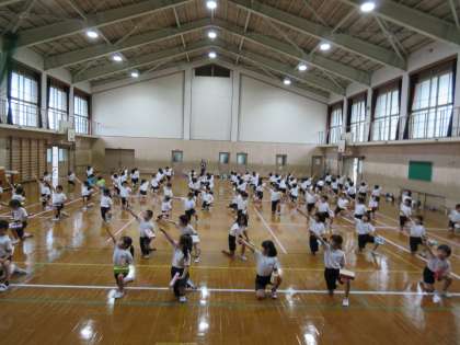 子どもたちの「ヤッ!!」という元気な声や,生き生きとした踊り。今日一日だけでも,本当に上手になりました。早く,広い運動場でも踊ってみたいですね。