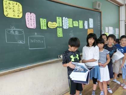 クラス毎に違うお話を選んでお話の絵を描き始めています。物語を聞いて様子を想像しながらアイデアスケッチに取り組みました。