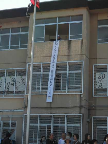 今年のスローガンは,『仲間とともに 全力を出しきり 最高の運動会にしよう』です。