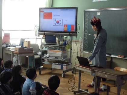 モンゴルの面積や人口,都市と地方との違い,食べ物など,様々なことを写真を使って教えていただきました。