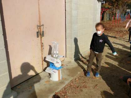 重さの単元で,1kgがどれぐらいの重さなのか予想し,これぐらいだと思う量の砂を袋に入れ,重さ当てをしました。はかりの針が2kg近くまで振れる班が多くあり,微調整をしながら,1kgの重さを体感しました。