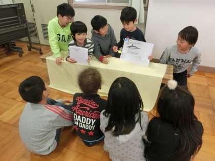 今日は総合的な学習で魚のことを学習してきた4年生の発表を聞かせてもらいました。魚の漢字のなりたちや,魚を食べると体にどんないいことがあるのか,魚の調理方法など,色々な知識を教えてもらいました。紙芝居やホワイトボードを使った発表があったり,クイズを入れて興味を引きやすくしてくれたり,とても楽しい発表会でした。今日聞いたことを生かして,体に良いものを摂って欲しいと思います。