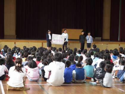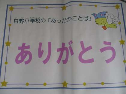 その後,5年生が日野人権宣言を群読してくれました。また,児童会からは,日野のあったか言葉の発表がありました。今年度は『ありがとう』に決まりました。日野小学校に『ありがとう』という言葉が溢れるようにしていきましょう。