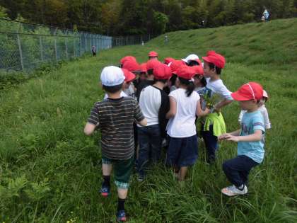 春の自然と触れ合うことをめあてに,校区の中にある公園に春をさがしに行きました。春のさわやかな風が吹くなか,いろいろなチョウやテントウムシ,カエルやバッタなどの生き物を見つけて大喜びの子どもたち。他にも,かわいい花や面白い形の葉など,たくさんの春を見つけることができました。