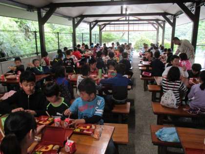 朝食の様子と浦山ラリーの様子です。朝食は食事係の子どもたちが中心になって準備をしました。