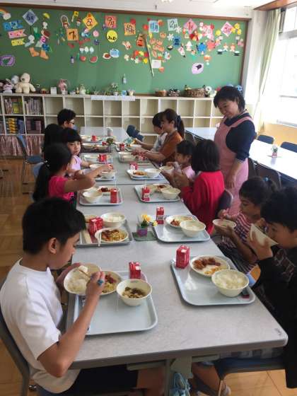同じ学校に通っていても、全員が集まる機会は少なく、学校行事の話やフィリピンの話で盛り上がっていました。また、知ってはいるけど普段あまり口にしない "おにぎり" の絵本の読み聞かせでは、みんな目を輝かせ、身を乗り出して聞いていました。