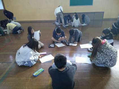 たてわり班の友達と話し合いの活動をしました。