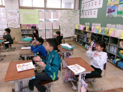 旋律のくり返しに気を付けながら、鑑賞していました。身体表現をしながら、楽しそうにきいていました。