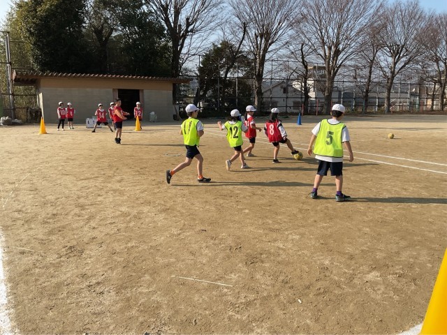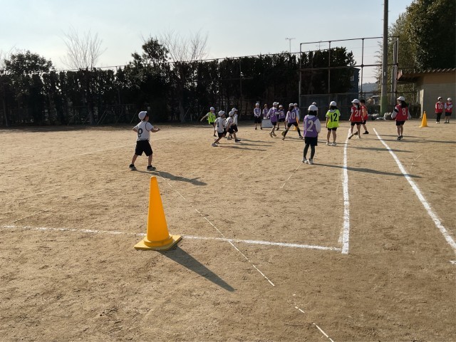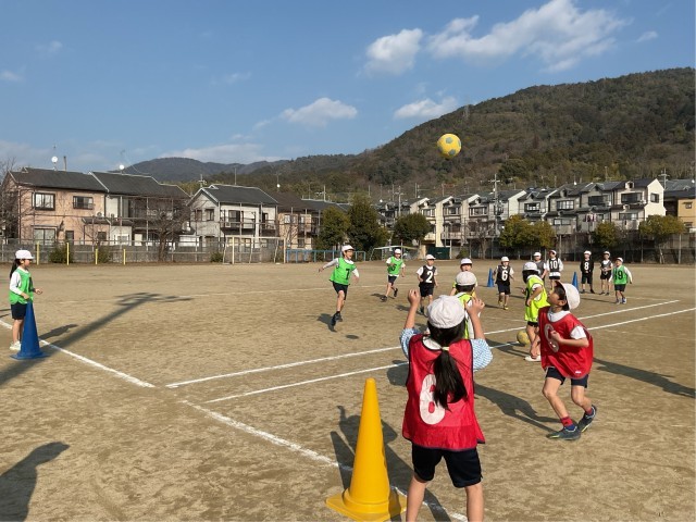 3年生、2クラス合同でサッカーの試合を行った様子です。
