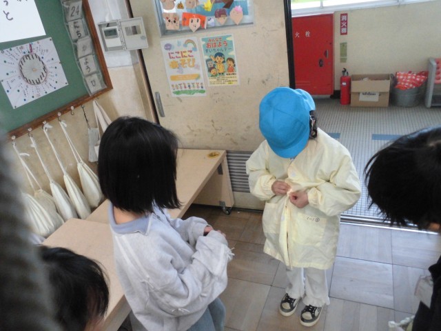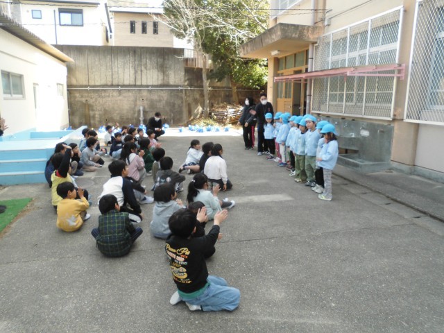 この日は誕生院保育園の園児のみなさんが来てくれました。日野小学校の1年生は「学校はたのしいよの会」を開いて、入学に向けて少しだけ学校での活動を紹介することができました。