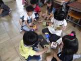 算数で「いろいろなかたち」の学習をしました。 班で協力して車やお城など、工夫して...