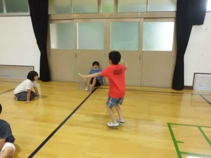 縦割りグループに分かれて,1分間で何回跳べるか数えました。