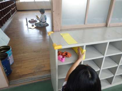 図画工作科「あんなところで こんなところで」で身近な場所を楽しい空間に変身させました。それぞれ自分で決めた場所に思い思いのものをつけて変身させました。どんな空間ができるか楽しみですね。