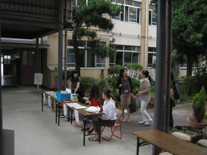 朝早くからPTA役員の皆様には受付を行っていただいています。