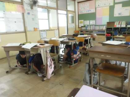 4時間目の後半は引き渡し訓練でした。前半は地震の怖さと備えについて学習しました。そしてどのような行動をとらないといけないかも話し合いました。最後には,放送の合図で避難訓練をしました。何か起こった時に訓練のように静かに冷静に行動したいですね。